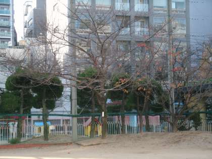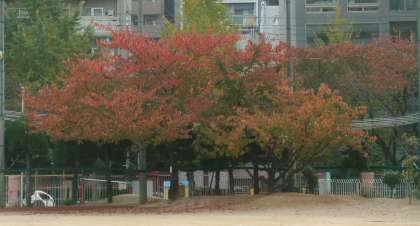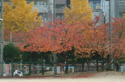 週末からの寒波襲来で近畿地方も厳しく冷え込み、さらに強い北風も加わったために校庭の最後の紅葉も枯葉となって舞っていました。季節が晩秋から初冬へと大きく変化したこの二十日間。校庭の桜の木の衣替えの様子がそれを物語っていました。