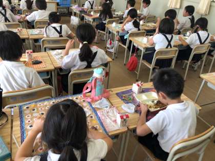3年生の給食時間のようすです。今日はカレーライスでした。