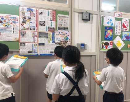 2年生は算数の学習で学校中を探検して、いろいろな数字を見つける活動をしていました。