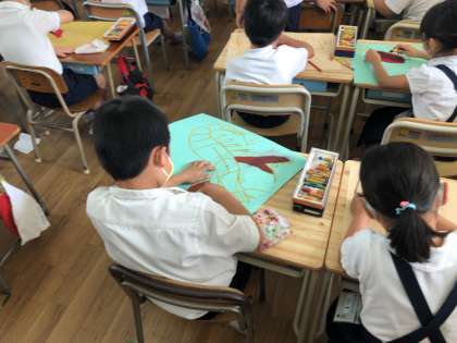 ザリガニの絵を描いていました。しっかりと細かいところまでパスを塗り、