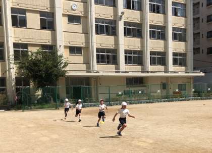 今日は運動会に向けてトラックを使って徒競走の練習をしました。