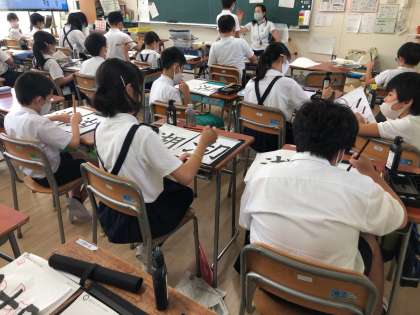 さんずいに、古、月、字の構成はさほど難しくありませんが、バランスや配置が難しい字です。何度も練習を重ね、本番に取り組んでいました。