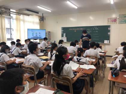 夏休みにどんなことをして過ごしたのかを英語で作文して、交流していました。