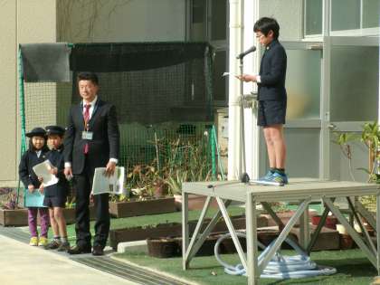 続いて、担当の教員より冬休みの過ごし方について話があった後、代表の児童から2学期に頑張ったことについての発表がありました。