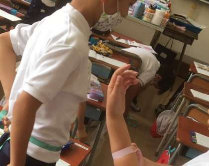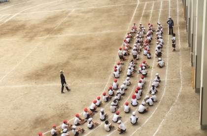 横の人と、ペースを合わせて入場したり、そろってサッと座る練習をしたりしています。