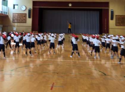 写真はラジオ体操です。本番は上手に体操できるかた。