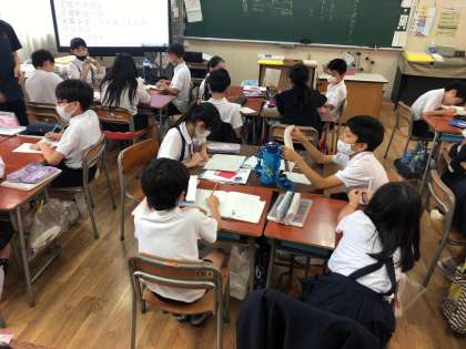 物語を作る学習のまとめとして、みんなで作った作品を読み合いました。