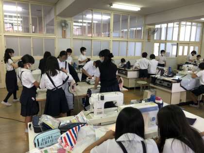完成したエプロンを自然体験学習で使うのが楽しみですね。