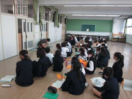 1時間目には、実行委員会の子どもたちによる説明会をしました。しおりを見ながら、3日間の流れをイメージしました。