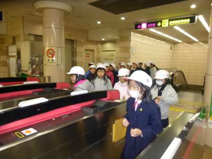 今日2年生は同じ中央区にある空堀商店街へ地下鉄を利用して見学に行きました。 空堀という地名の由来は豊臣秀吉が大阪城を築城した頃にまでさかのぼります。大阪には他にも歴史のある地区は数多くありますが、そのほとんどが第二次大戦の空襲によって焼失してしまいました。空堀はこの戦災を免れており、歴史的価値の高い建物や町の風景などが現在でも多く残されています。