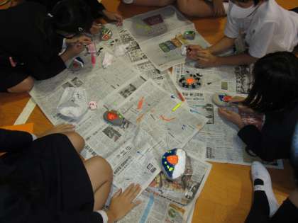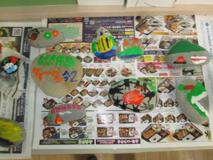 1時間目に5・6年生で講堂に集まりました。活動班の振り返りをしました。そして、6年生から5年生へサプライズ・プレゼント!!浜辺で拾った石です。早速ストーンペインティングをし、思い出の作品を作りました。熱心に取り組んだため、急遽2時間目も続けて行いました。