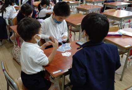 雨が降ったので,残念ながら外で遊べません。教室でトランプなどをして過ごしました。