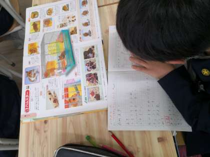 漢字の練習や、図書室で借りた本を見て興味のあることなど、勉強したいことをノートにまとめました。