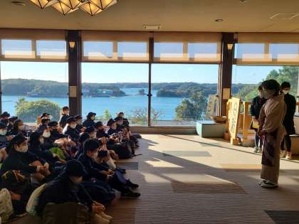最後に女将さんから、『賢島は最初無人島だったが、皆さんに修学旅行に来てもらったり、サミットが開かれたりするまでに発展した』ことをお話しいただきました。