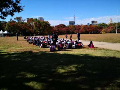 ペア学年で大阪城公園へ行きました。3年生と5年生との仲が、ますます深くなりました。