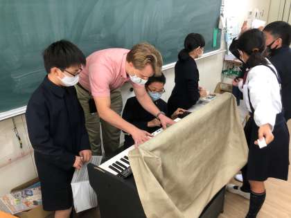 今日はBryan先生の外国語。早めに教室に来てくださり、子どもが弾いていたオルガンで演奏してくださいました!聞いていたみんな、先生が上手すぎてびっくり!!