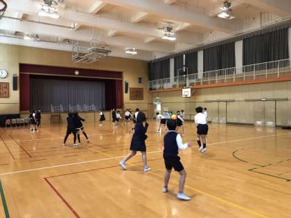 もう一枚は講堂開放、ドッジボールの様子です。3つのボールであちらこちらから当てたり当てられたりします。今日も白熱した戦いでした。