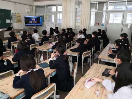 不審者が来校した想定で、避難訓練を行いました。訓練後は動画を見ながら、学校の外での安全について学習しました