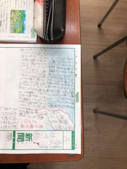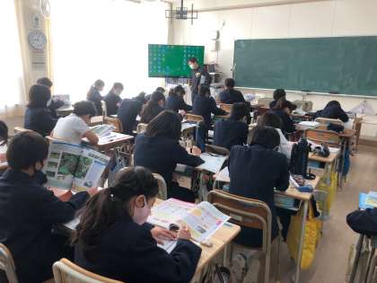 環境新聞を作っています!パンフレットを読み、関心を持った記事についてまとめています。
