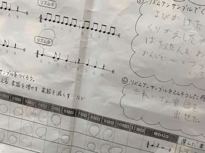 楽器の音色や音楽の仕組みを生かして、リズムアンサンブルを作りました。