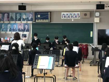今日はみんなで聴き合い、演奏をしたあとに感想をかいて振り返りをしました。