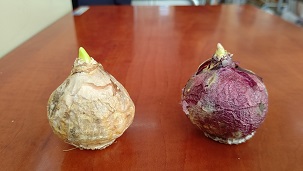 先日観察したチューリップに続き、ヒヤシンスの球根を観察しました。