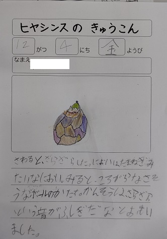 12月4日 1年 生活 ヒヤシンスのきゅうこん