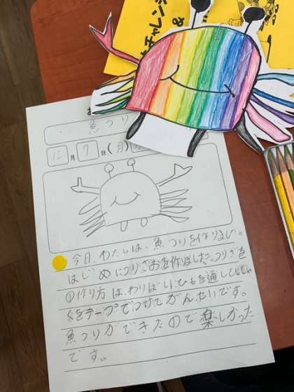 1組は、漢字の復習です。今までに習った中で、読みかえる字や似ている字をおさらいしました。2組は、生活です。魚つりあそびに取り組みました。個性豊かな海の生き物が大集合です。3組は、国語です。似ている2つのもの(例えば、イルカとシャチ)を比べて、同じところと違うところを整理して文章にする学習です。