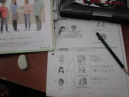 今年からは英語を「書く」ことにも取り組んでいます。そして、書いたことを友だちに伝えます。今日は「聞く」「書く」「話す」の3つを特にがんばりました。