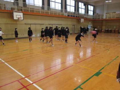 6年生では、「1日に1回は体を動かそう」と考え、「みんな遊び」の時間を設定しています。多くの子どもは講堂へ行ってドッジボールをして遊びます。ドッジボールをしたくない子どもは、体育館の端を友だちとしゃべりながら歩いたり走ったりしています。