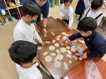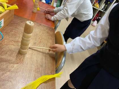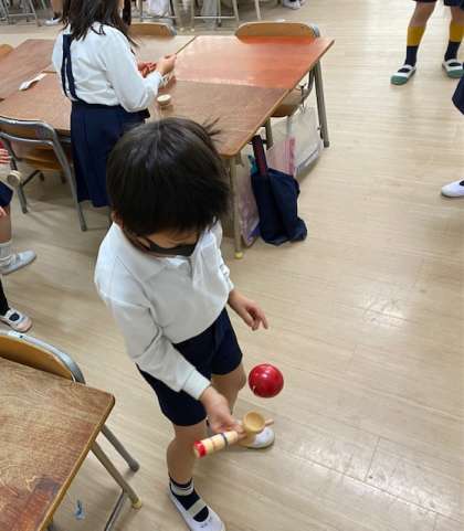 生活科の学習で昔遊びをしました。初めての遊びに大はしゃぎ!得意な子はコツなども教えてくれました。楽しく遊んで、上手になっていきましょう!