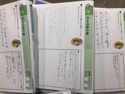 2枚目、道徳の学習です。立山れんぽうの高原植物のお話をもとに自然を守ることや、そのためにできることは何かを考えました。わたしたちにできること、いろいろと意見が出ました。