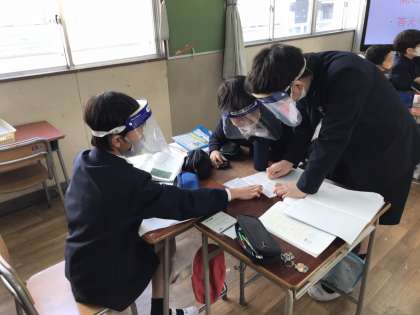 班のメンバーでめあてを意識しながら、話し合っているところです。