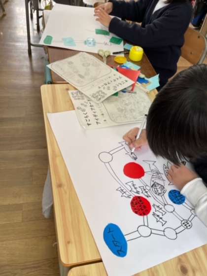 こどもたちは自分だけのすごろくづくりに夢中です。