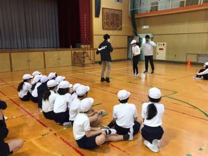今まで見たこともない技を目の前で見ることができて、子どもたちもとても喜んでいました。そのあとは、先生がまわす縄に入って実際に飛んでみました。