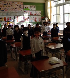 2月22日 1年生 初めての朝会