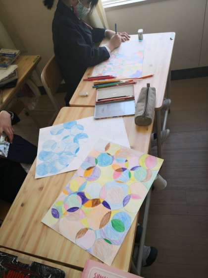 次はテーマを決めて円を描きます。どんな色鮮やかな作品になるのか楽しみです。
