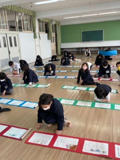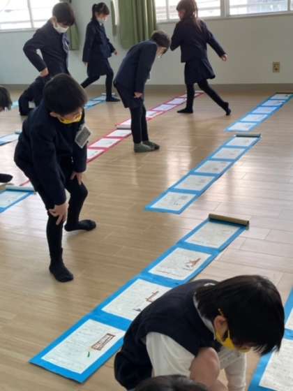 生活科の「わたしのせい長絵まき」で友達の作品を読み合う時間です。