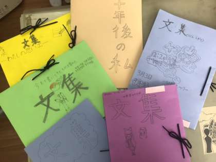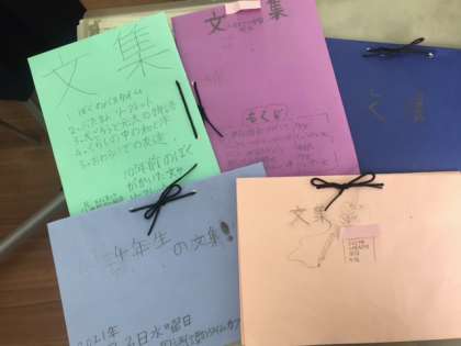 4年生になって、今まで書いてきた文章をふり返り、それを一冊にまとめて文集を作る活動をしています。