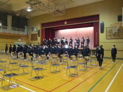今日、初めての卒業式の練習がありました。めあてを確認したあと、呼びかけや歌などの練習をしました。