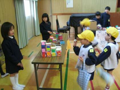 2年生のお兄さんやお姉さんは、各テーブルに輪ゴム飛ばしや紙飛行機などの楽しいコーナーを準備していました。たくさんのおもちゃが用意されていましたが、全部のコーナーを回りきれないほどあっという間に楽しいふれあいのひとときは過ぎたようです。