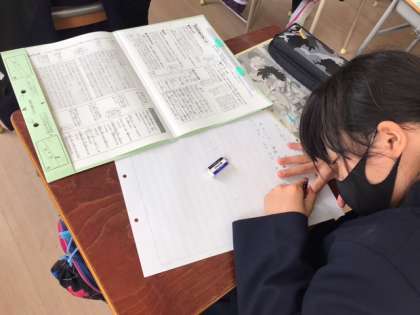 先生が提示した「今日のつけたい力」を意識して、テーマに沿って作文を書きます。