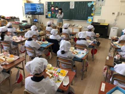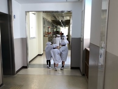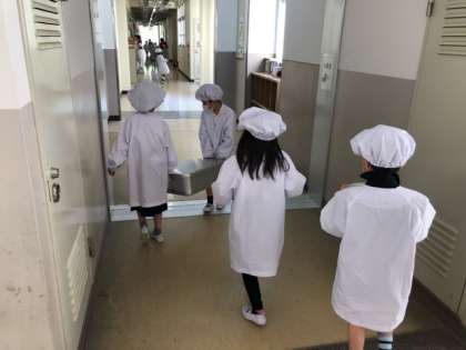 1年生は今日から自分たちで給食を取りに行くようになりました。
