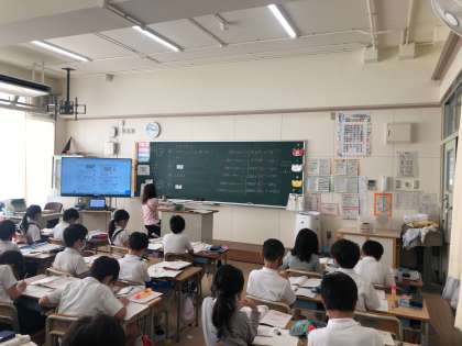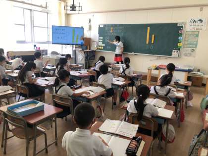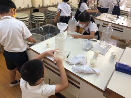 2年生は、実際に水をはかり取って水のかさを学習していました。