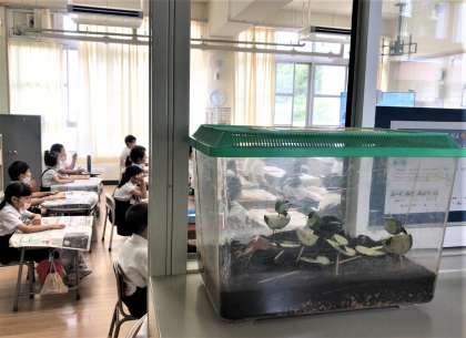 1年生の教室の前には、鈴虫がいてリーンリーンと美しい音色を奏でてくれています。