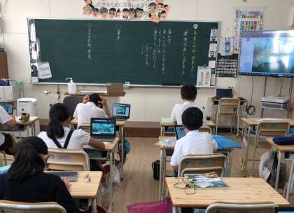 国語の学習で環境問題を取り上げた写真を見て、