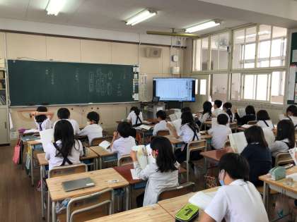 中大江小学校の6年生で代々引き継がれているフラッグが配られ