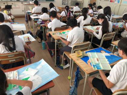 図工の時間に高学年で取り組む平和ポスターに取り組んでいました。
