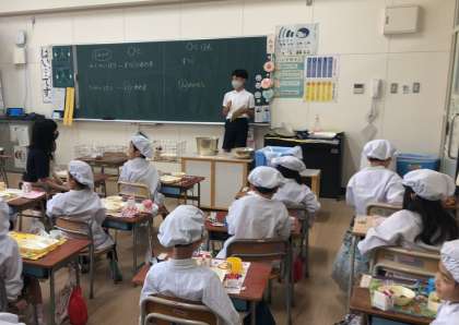 火曜日の給食時間には保健委員の人たちが各教室に回って