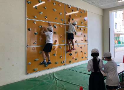 ピロティ内のボルダリングスペースが今日オープンしました。
